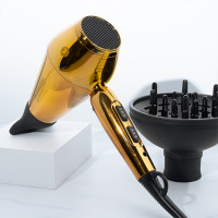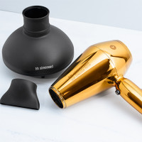 HH Simonsen Compact Hair Dryer and Diffuser are a divine pair. This limited edition set in Golden Delight unites both luxury and performance. The compact, ultra-lightweight and ergonomically balanced hair dryer is impressively performance-driven with a professional, long-life 2100 watt DC motor. This surprisingly quiet hair dryer features a super strong airflow up to 25% stronger than traditional hair dryers. 2 heat/airflow settings suit all hair types, while ionic technology eliminates frizz. The unique diffuser enhances curls with innovative air ducts and nozzles. Danish design at its very best.