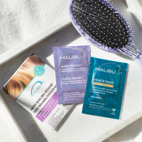 Take your hair to rehab with Malibu C. Dial down discolouration and keep your blonde hues true. Malibu C Mini Malibu Rehab Malibu Blondes Treatment is a set of 2 sachets, Malibu Blondes Hair Treatment and Miracle Repair Reconstructor. This set is specifically designed to gently draw out damaging mineral impurities and effectively eliminate unwanted brassy and yellow tones. Malibu C is always cruelty-free, vegan and made in the USA. Hair treatments formulated without sulphates, surfactants, gluten and paraben.