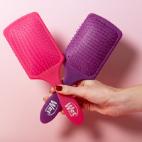 Meet the Wet Brush Frost Paddle Detangler Purple. Spread conditioning treatments and hair masks through hair with effortless ease. The vented design makes it easy for water and excess product to escape the brush, ensuring theres no leftover build-up. Cleaning the brush is a breeze - just rinse and repeat. 20% larger surface area spreads treatments and masks evenly through hair. Also adept at detangling, ultra-soft IntelliFlex bristles glide through tangles without pulling or breaking hair. Limited edition in bold colour.