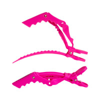 Effortlessly hold large sections of hair with this wide mouth, rubberized no-slip clip. These clips are pretty in pink and stronger than a gator's grip!