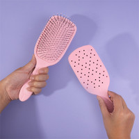 The eco-friendly detangler brush which wont hurt hair or the planet. The WetBrush Go Green Paddle Detangler in Pink features exclusive IntelliFlex bristles loosen knots and tangles on wet or dry hair, without pulling or snagging. More surface area allows you to brush through thick, coarse, curly or long hair with ease. AquaVent design allows for fast drainage and easy clean-up.