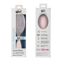 WetBrush turns 20! Wet Brush Pro Birthday Celebration Detangler Pink features a limited edition, sparkling pastel design. This is the world famous, award-winning Original Detangler redesigned by stylists for stylists. Revolutionary IntelliFlex bristles diffuse knots on all hair types, wet or dry, gliding through tangles with less effort, less pain and over 45% less breakage**. Ergonomically advanced with finger rests and rubberised EasyGrip handle for more comfort and control.