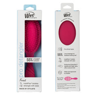 Brush boldly! Wet Brush Pro Frost Detangler Pink features limited edition bold colour. This is the world famous, award-winning Original Detangler redesigned by stylists for stylists. Revolutionary IntelliFlex bristles diffuse knots on all hair types, wet or dry, gliding through tangles with less effort, less pain and over 45% less breakage**. Ergonomically advanced with finger rests and rubberised EasyGrip handle for more comfort and control.
