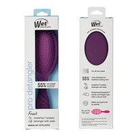 Brush boldly! Wet Brush Pro Frost Detangler Purple features limited edition bold colour. This is the world famous, award-winning Original Detangler redesigned by stylists for stylists. Revolutionary IntelliFlex bristles diffuse knots on all hair types, wet or dry, gliding through tangles with less effort, less pain and over 45% less breakage**. Ergonomically advanced with finger rests and rubberised EasyGrip handle for more comfort and control.