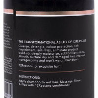 Experience the transformational ability of 12Reasons. Cleanse, detangle, colour protection, rich nourishment, anti-frizz, eliminate product build up, deeply moisturise, add brilliant shine, smooth, nurture dry and damaged hair, improve manageability and wont weigh hair down. 12Reasons for exquisite hair!